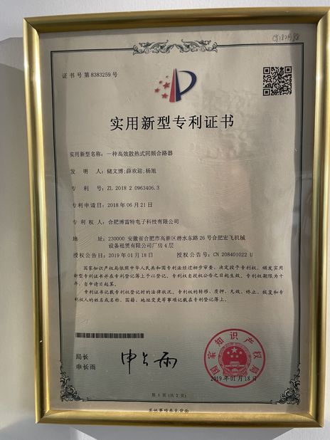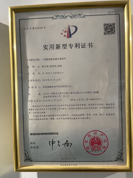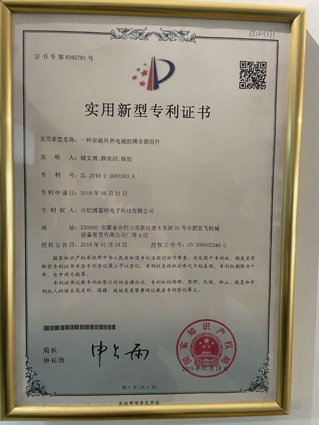 Πρότυπο: 实用新型专利证书Αριθμός: 8735454Ημερομηνία Έκδοσης:Ημερομηνία λήξης: